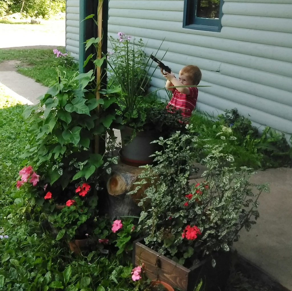 The sunflowers are doing their thing. My garden is a tiny little jungle of weeds and vegetables and flowers. I’m still unsure if I want to garden like a virtuous woman next year to see if I can feed my family out of it. It’s just been fun this year. In the background is the chicken house I built this spring. That was hard work but fun for both Jube and I. Dru plans to get the roof finished for me soon too.