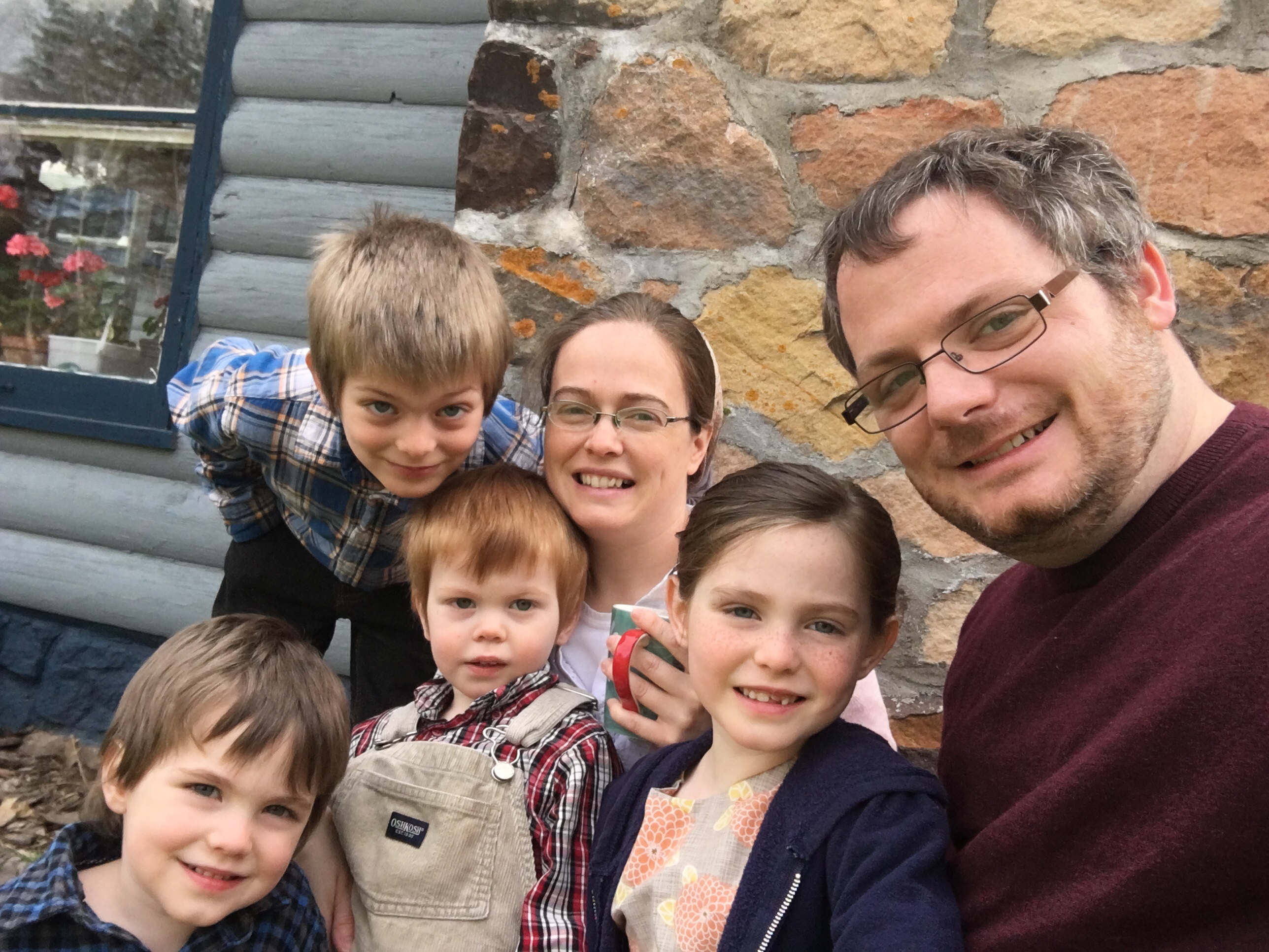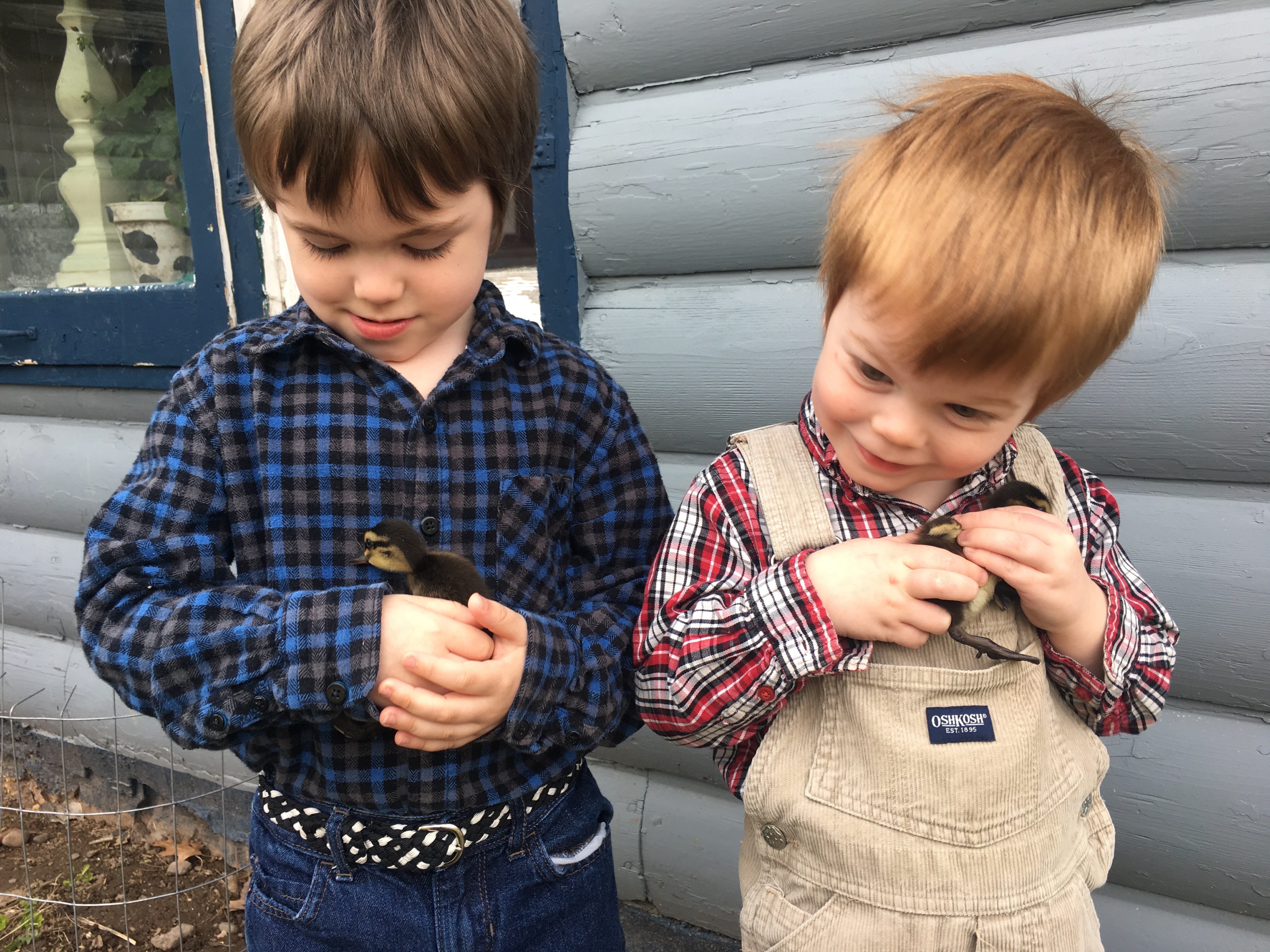 Rian is my redhead. He says and sings interesting things. Tonight he was singing an imprecatory psalm about Jesus taking care of bad guys and keeping him safe. Where he comes up with these things we know not. Family selfie when we don’t have someone to hold the camera.This man is my favorite. I’m forever thankful that I married him. He is my favorite preacher too. Go hear him at gracebiblestonelake.wordpress.com. (Or come visit us!) He is passionate about proper exegesis of the Bible. While I dabble in learning about attainable and sustainable homesteading ideas, he pursues attainable and sustainable Christianity as we follow Jesus through his Word. Together we’re learning that all of the attainable-sustainable is tangled together, and doesn’t always happen as gracefully as we think it ought.ca6f19ba-9d45-4033-bb3a-913af257579d.jpgStill liking my chickens over here. Do I really look like a pastor’s wife? If I’m ever tempted to worry that I appear to be too frivolous on one hand, too raw on the other, I have people who tell me that my “real” is a good and healthy thing. I hope this to be true by the grace of God.Stuffing a wiggly little duckling into the pocket of a wiggly little boy while leaning out a window isn’t super easy.It was Dru’s idea to pull the dog into the picture. He said that if ducklings and kittens could be on the picture, the dog should be too. Mercury proceeded to put on his best doofus show. We like us. Doofus dog and all.