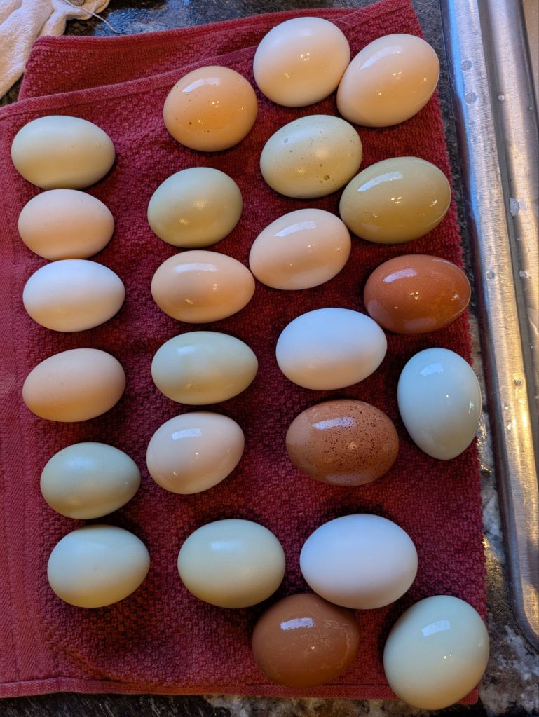 So I wash eggs and admire the colors. And thank God for this happy.